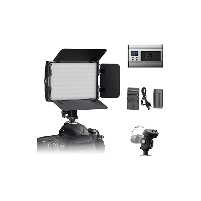 Les 144 LED Éclairage LED bicolore de 15 W sur l'appareil photo de Tolifo comporte une sortie variable de 3200 à 5600K, une gradation de 10 à 100%, des portes intégrées et un panneau de diffusion. Alimentez ce panneau LED bicolore à l'aide de la batterie Sony de type série L fournie ou d'un adaptateur secteur disponible séparément.
