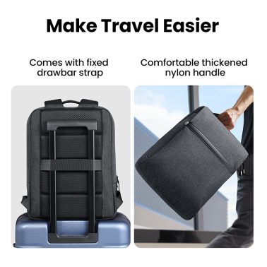 Le sac à dos Ugreen pour ordinateur 15,6" combine élégance et résistance. Fabriqué en polyester de haute qualité, il résiste à l'eau pour protéger votre laptop. Il offre un compartiment principal spacieux et de multiples poches pour ranger vos accessoires. Les bretelles réglables et rembourrées garantissent un confort optimal. De plus, il s'attache facilement à une valise grâce à sa sangle de bagage. Un choix parfait pour un style professionnel au quotidien.
