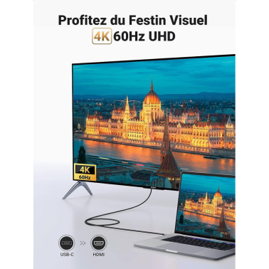 Optimisez votre expérience visuelle avec le câble Ugreen USB-C to HDMI, conçu pour offrir une clarté d'image sans pareille.