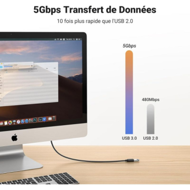 - [ Super Vitesse à 5Gbps ] Supporte un transfert de données jusqu'à 5 Gbps, 10 fois plus rapide que l'USB 2.0. Capable de télécharger un film en quelques secondes, minimise le temps d'attente. Rétro-compatible avec USB 2.0 à pleine vitesse (480Mbps)/ USB 1.1 (12Mbps).