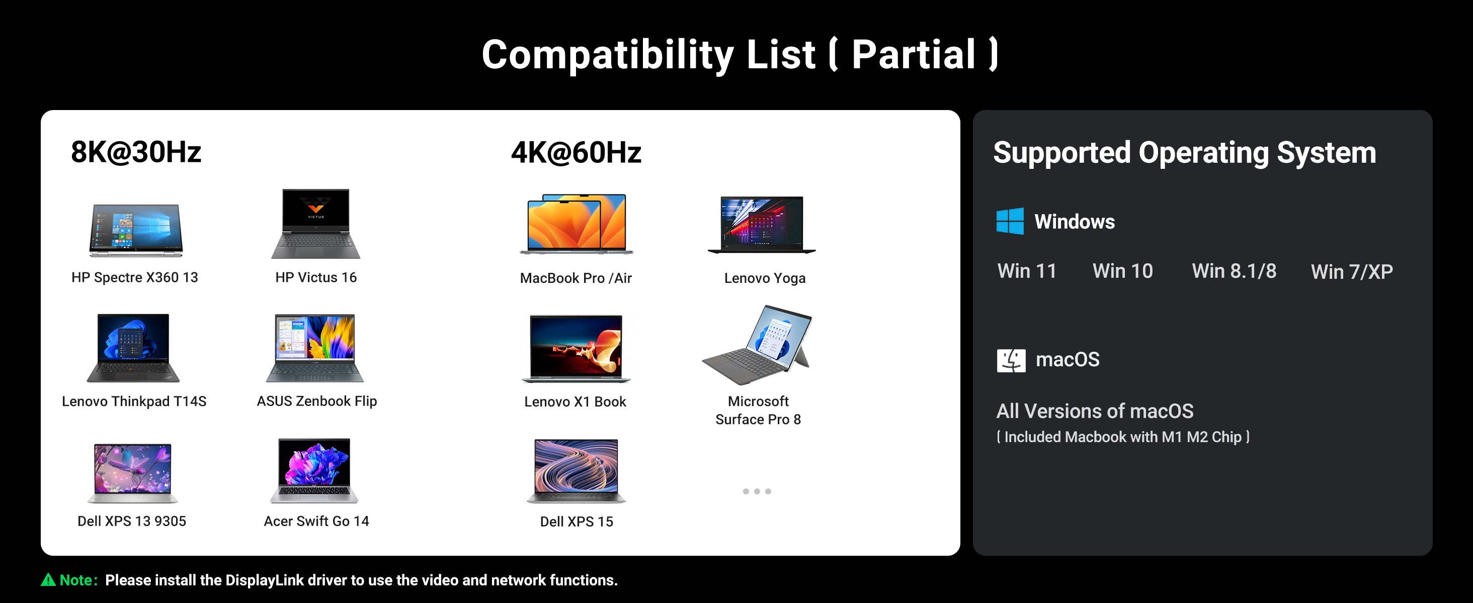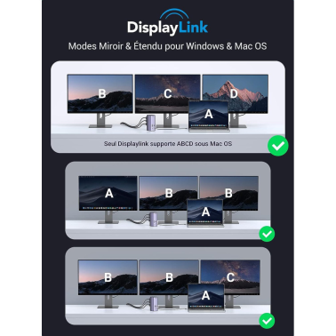 Station d'accueil USB C pour MacBook avec 2 ports HDMI DP 8K, données USB C et USB-A 10 Gbit/s, charge PD 100 W, Ethernet, audio, lecteur de carte SD TF pour Mac OS, Windows