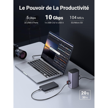 Optimisez votre connectivité avec le Hub USB-C Ugreen Revodok 12 en 1. Avec ses 12 ports, il devient la station d'accueil ultime pour votre portable. Deux ports HDMI, un port DP, et un port USB-C 3.2 vous offrent une expérience multimédia immersive. Le PD 3.0 100 W garantit une recharge rapide. De plus, la carte SD/Micro SD et l'Ethernet facilitent le travail et les loisirs. Une solution polyvalente pour un monde connecté.
