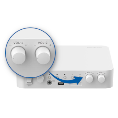 - Contrôle indépendant du volume du microphone, contrôle du volume de la partition à 2 canaux