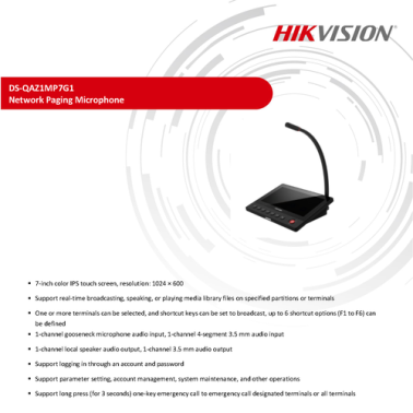 Microphone d'appel de 7 pouces HIKVISION DS-QAZ1MP7G1