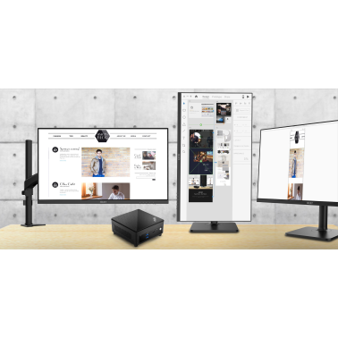Avec des connecteurs HDMI™, DisplayPort et Thunderbolt 4, le Cubi 5 12M vous permet de connecter simultanément trois écrans et de profiter ainsi d'une productivité améliorée, que vous soyez chez vous ou au bureau.