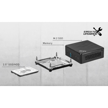 Si vous voulez mettre à niveau les performances de votre mini-PC, vous pourrez facilement accéder au slot SSD M.2, au slot HDD/SSD 2,5'' et aux deux slots mémoire SO-DIMM en détachant la partie latérale. Grâce à cette caractéristique, vous pouvez rendre votre Cubi 5 12M plus flexible et personnaliser votre utilisation comme vous l'entendez.